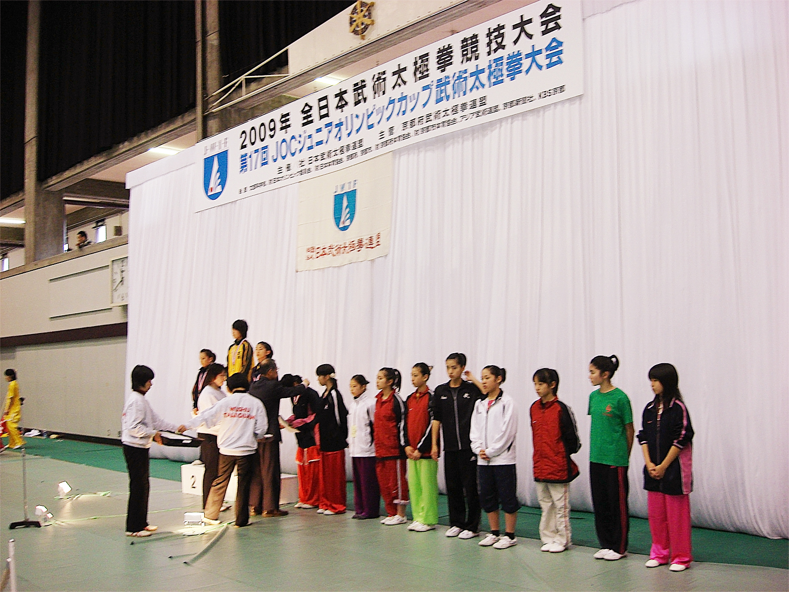 日本連盟主催の「第17回JOCジュニアオリンピックカップ大会」と「2009年全日本武術太極拳選手権大会」が4月4日(土)、5日(日)の2日間にわたり、京都府京都市・京都市体育館において実施された。京都府連盟が主管団体として両大会の運営にあたった。