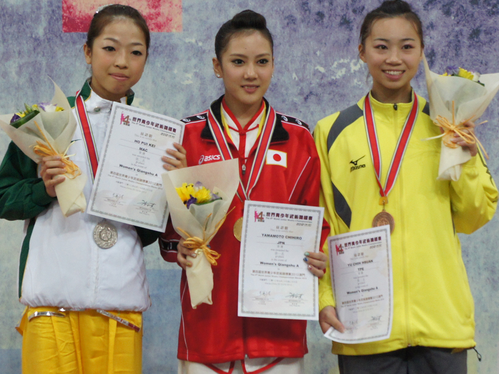 今大会は,同一種目を従来套路の選手と新套路の選手が競い合うという変速的な暫定ルールで行われた。新套路は難度動作を伴うため,競技ルールの動作減点(動作の揺れなど)で,従来套路と比べて不利であった。それにもかかわらず,山本千尋選手が女子長拳2位(銀),剣術2位(銀),槍術1位(金)を獲得し,圧倒的な強さを見せた。また,中井上総介選手は,男子棍術で見事に1位(金)に輝いた。ジュニアの男女の中心選手が金メダルを獲得したことは,日本チームにとって意義のあることであった。荒谷友碩選手も,太極拳2位(銀),太極剣3位(銅)で,期待通りの成績を挙げた。女子太極拳の齋藤志保のメダルが期待されたが,一つの難度動作で極めて微妙な揺れで減点され,成績は5位に終わった。この減点が無ければ2位となる得点であった。しかし,国際大会での微妙な減点は,本人の今後につながる大きな経験となった。この経験を生かして,強い選手に育つことが期待される。