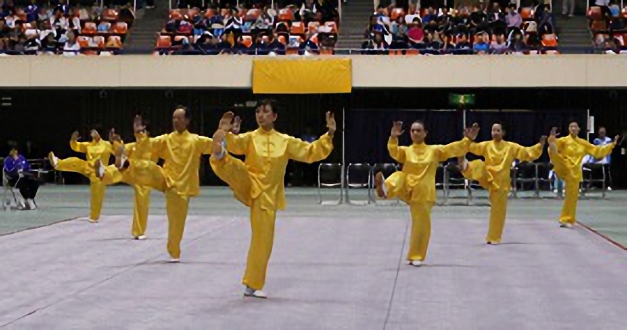 大会当日はあいにく朝からの雨で受付時のトラブルが心配されたが,予定通り午前9:15から競技が開始され,色とりどりのチーム表演服で14m×8mの会場コート上に各4分間の演武を披露してゆく。各チームの表演が終わるたびに,満場から暖かい拍手が送られる。交流会ならではの一体感が生まれていた。