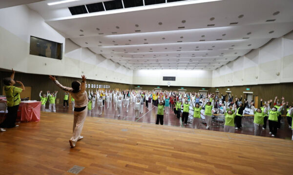 中盤は、よさこいソーランで、会場全員ノリノリのかけ声「ハァッー‼」、王正老師による体験コーナーでは、陳式太極拳基本動作で、元気の源を体へ、ご褒美ありがたく受け止めました。