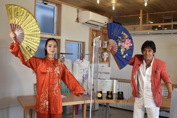 MCは、江戸川区ご出身の松崎しげるさん! 対談のほか、太極扇もご体験いただきました。