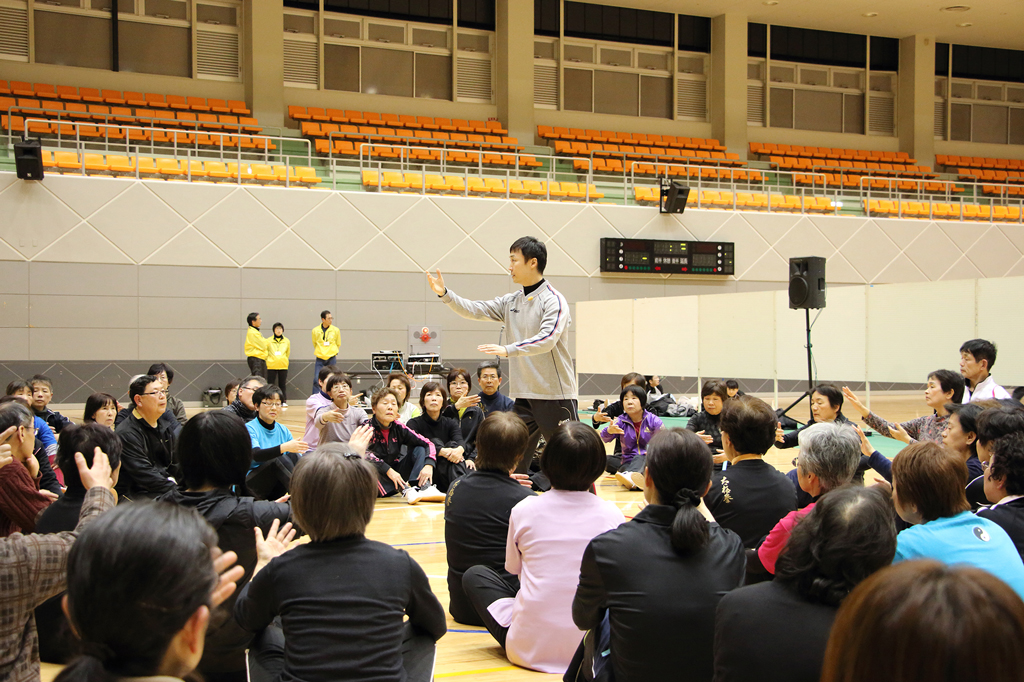 2月13・14日の2日間,「第12回喜多方冬の太極拳講習会」が,喜多方市押切川公園体育館において開催された。日本連盟から,石原泰彦常務理事・太極拳指導員委員会本部講師と孔祥東選手強化委員会コーチを講師として派遣した。