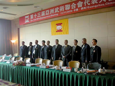 于再清会長が、この4年間、WFAは大いに発展してきたと述べ、アジア武術界の成果は世界の「武術(普及)運動」の要であり、アジアが先頭に立って努力していこうと意欲を示した。村岡秘書長が活動報告を行い、「アジアは東アジア、東南アジア、南アジア、西アジア、中央アジアの5地域で構成されているが、最近では地域間の発展の度合いの格差が少なくなっている」と現状を報告して、今後も協力しあって向上していく努力をしたいと述べた。